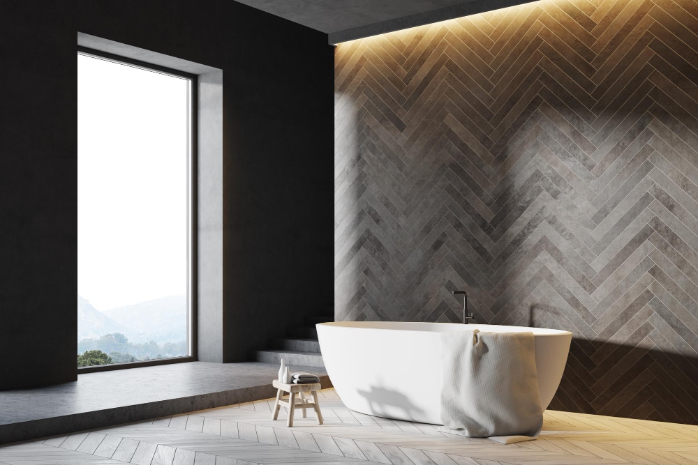 This visual trick prevents the bathroom from feeling boxy or flat. Darker tiles in a herringbone pattern behind a vanity create depth and drama. Lighter shades across a shower wall brighten the space and make it feel larger. The effect is measurable and rooms simply feel more open.